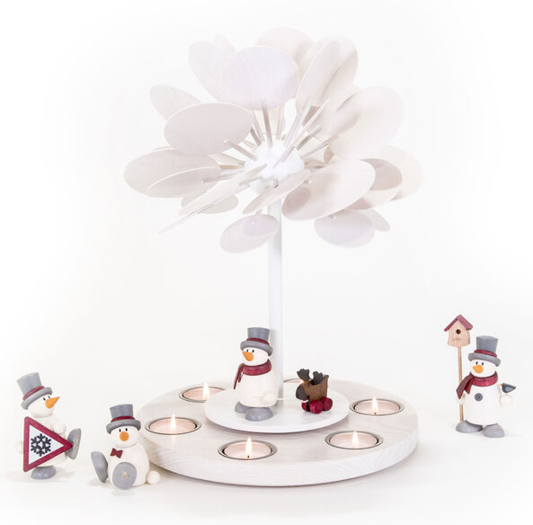 Teelichtpyramide für 6 Teelichter mit den Schneemännern Fritz und Otto